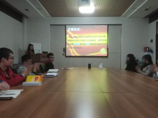 2018年11月17日星期六晚上七点,硕7010党支部组织全体党员围绕以向朋辈先进学习为主线,围绕研究生科学道德与学风建设,很荣幸地邀请到冯新安师兄和李玥师姐来为我们分享他们的科研经历。