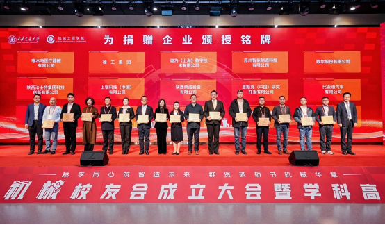 近年来,一大批企业、社会团体和爱心人士在机械学院设立了奖学金和奖教金,有力支持了学院的人才培养。校教育基金会秘书长邢晓强、机械工程学院副院长王永泉共同为上银科技(中国)有限公司、恩斯克(中国)研究开发有限公司、比亚迪汽车有限公司、潍柴动力股份有限公司、陕西法士特集团科技创新有限公司、歌尔股份有限公司、陕西荣威投资有限公司、苏州智能制造科技有限公司、遨为(上海)数字技术有限公司、深圳亚泰光电技术有限公司、西安沃祥航空科技有限公司、上海轩田智能科技股份有限公司、徐工集团、长城汽车股份有限公司、啄木鸟医疗器械有限公司等15家设立奖学金和学生活动专项基金的企业代表颁授捐赠铭牌。