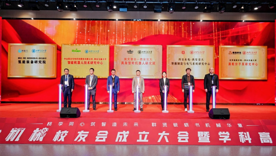 大会举行了校企联合科研平台揭牌仪式。北京通嘉宏瑞总经理雷晓波,西安中车永电有限公司研究院院长刘冠芳,深圳优艾智合联合创始人许瑨,中山联合光电科技股份有限公司董事长龚俊强,秦氢元(陕西)能源科技有限公司总经理张昭,以及机械工程学院副院长周光辉、贺健康共同为5个校企联合研究平台揭牌。