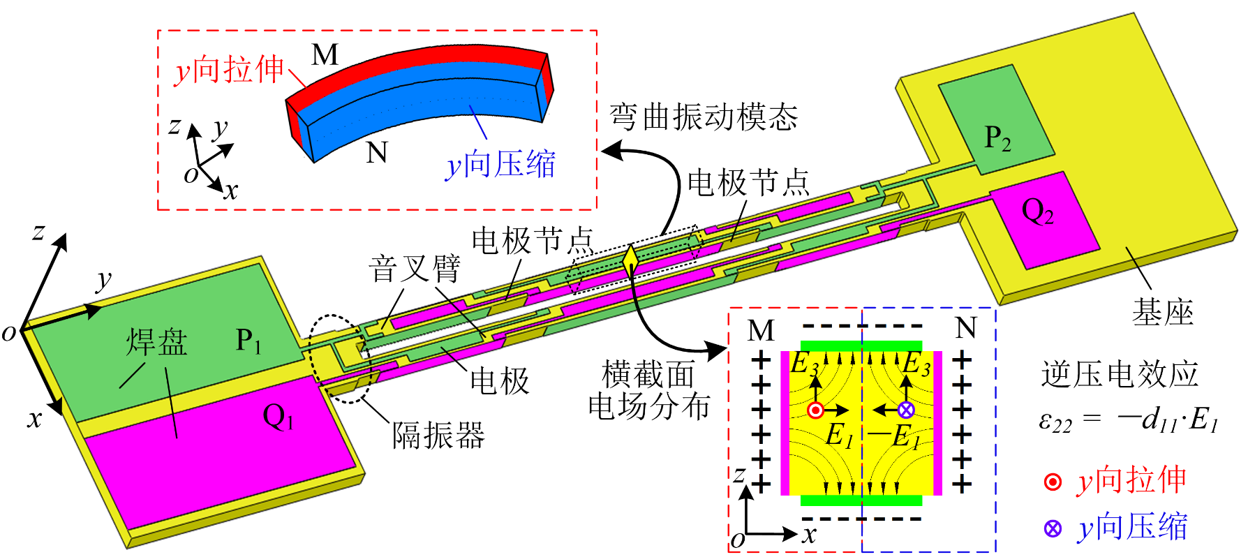 甲方设计的石英谐振器结构如图所示,谐振器的主体结构为Z切石英晶片,采用石英MEMS工艺制备,长度方向沿晶体轴y轴,厚度方向为z轴,宽度方向为x轴,电极为三段-四面式电极分布。石英振梁特征尺寸为7.5mm×1.4mm×0.08mm(含固定端),电极为Cr/Au,需经退火处理。乙方应按照采购方提供的图纸完成器件的加工制备。加工数量600个。