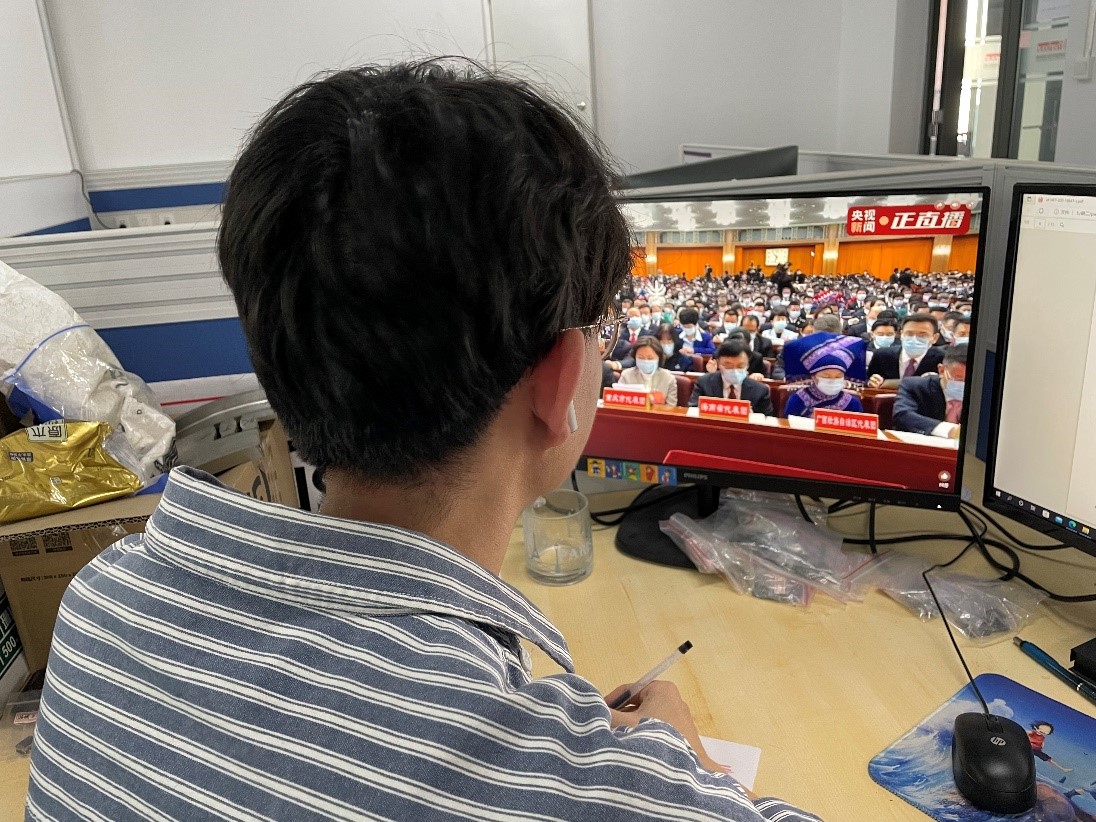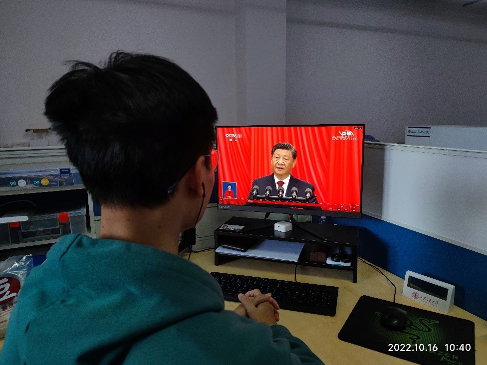 党的二十大于2022年10月16日10时在北京顺利开幕,西安交通大学机械工程学院硕0004党、团支部组织党员、团员集体收看党的二十大上的报告。报告内容引发同学们的热议。