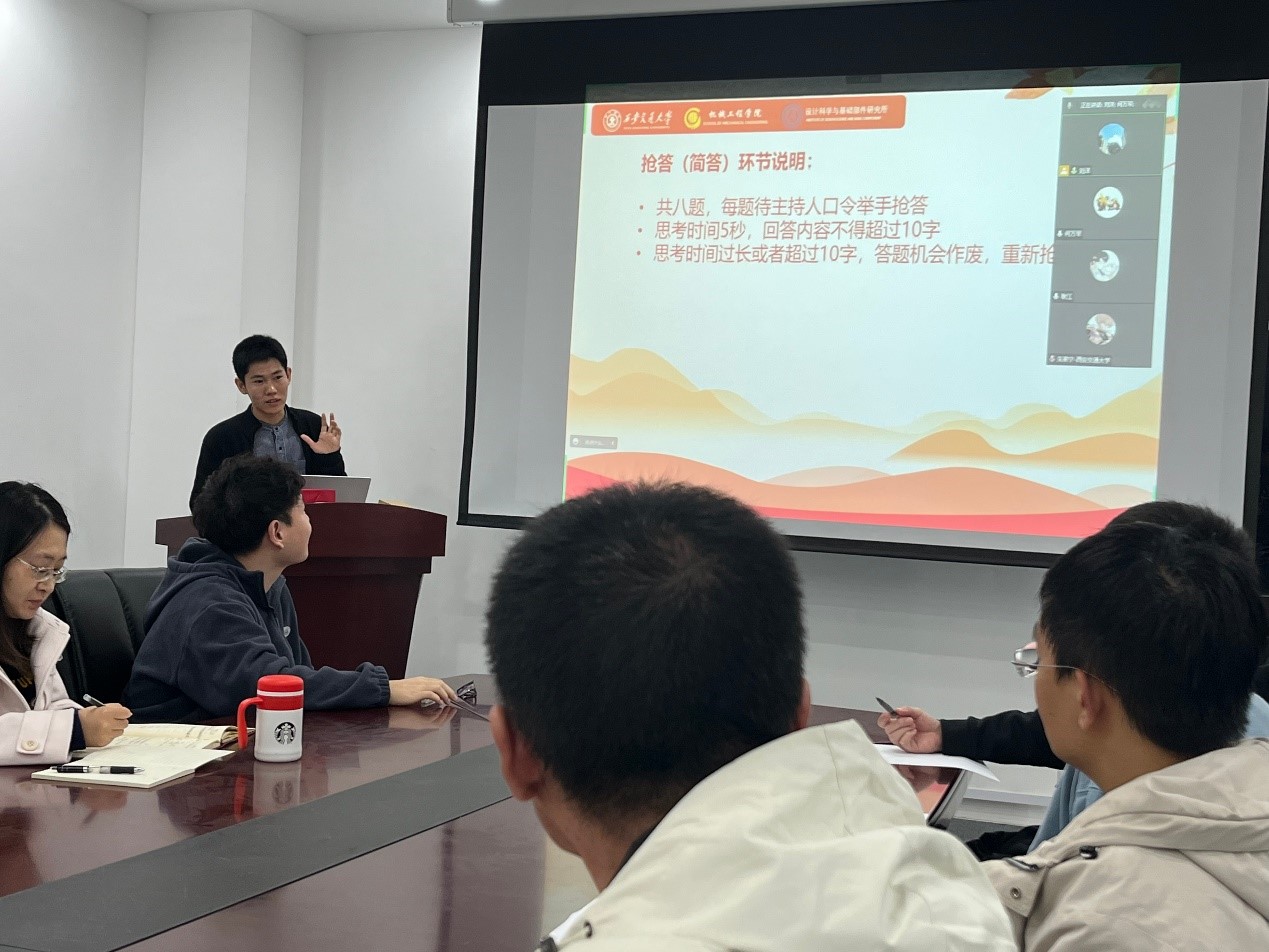 设计所博士生第三党支部本年度十月专题组织生活,选择以有奖问答形式,别开生面地开展进行。面向群体不再局限于本支部党员和积极分子同志,更是在设计所内部发起学习号召。本次组织生活会,共有八名中国共产党党员(三名兴庆同志线上参与)、两名积极分子以及四位群众到场,现场气氛热烈,学习情绪高涨。