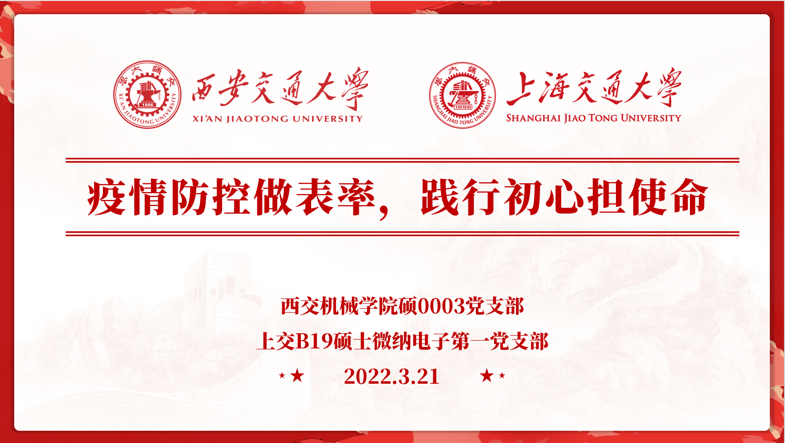 硕0003党支部和上海交通大学B19硕士微纳电子第一党支部开展共建交流活动,相互分享学习抗疫过程中形成的宝贵经验和心理感受,两支部全体成员线上参加。