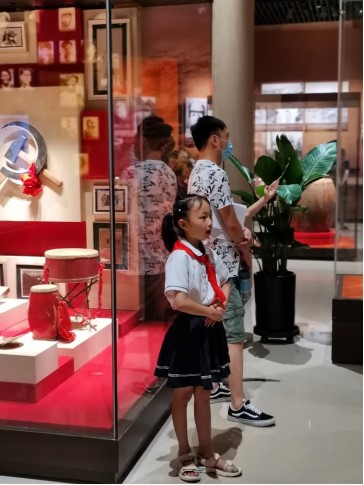 “中国人民抗日战争的政治指导中心”模块包括“为建立抗日民族统一战线而奋斗”、“争取实现全面抗战路线”、“建立敌后抗日民主根据地”、“坚持抗战、团结、进步的方针”以及“夺取人民抗战的最终胜利”五个单元,其中陈列着的那些承载抗战记忆的物品直观地反映了那个时期党带领的人民军队的艰苦奋斗史,深深地震撼了团队每一个成员的心灵!实践团队成员们展馆中看到了来自延安职业技术学院附属小学的小学生讲解团,他们是通过学校的选拔,每周末在此为游客讲解的志愿者。小讲解员们既深入体会了红色精神,又将这份感悟传递给了游客,加深了游客对延安精神的理解。