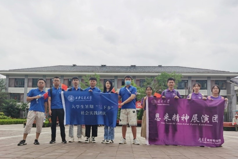 “星火燎原”实践队的成员为感恩老兵爷爷们的故事分享,为老人们带去欢乐,共同演唱了《过雪山草地》等红色歌曲,爷爷们深感温暖,并且热情合唱。南开大学恩来精神展演团的成员们为爷爷们动情展演了周恩来总理的故事和恩来精神,得到了爷爷们的肯定。表演结束后,实践队向老兵爷爷们赠送了小型五星红旗表示感谢。虽然出于防疫的考虑队员们无法与他们近距离交流,但是心灵的距离并未因此有所隔阂,交流现场欢声笑语不断。