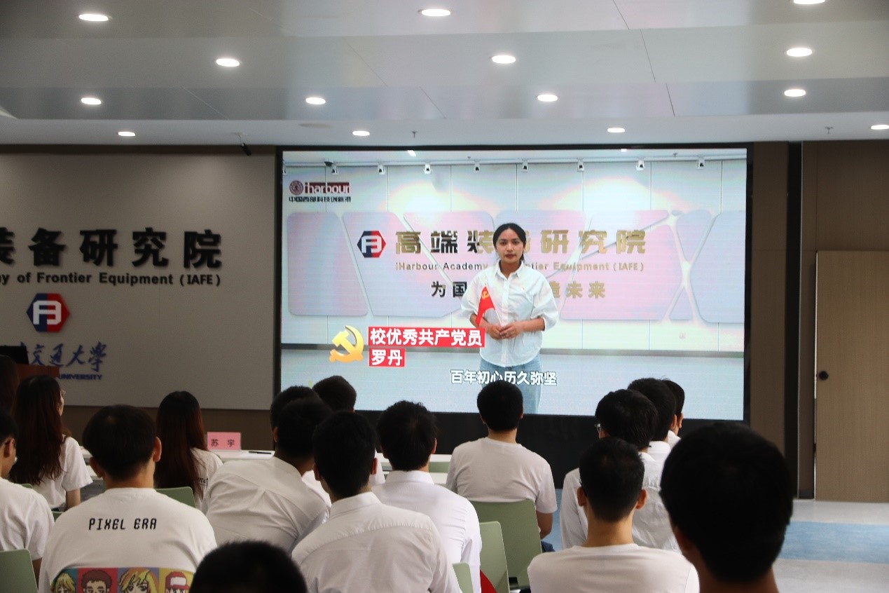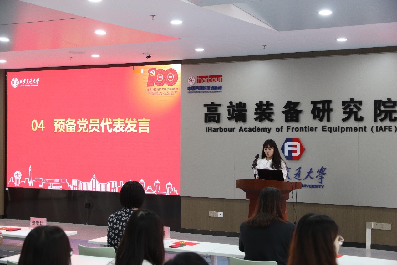 新发展党员代表先进所博士生第二党支部的张曼玉同志表示:“作为一名交大人,要在西迁精神的滋养下,明确自身的使命和担当,要高擎奋发图强的爱国主义旗帜,凝心聚力的集体主义旗帜,担当使命的英雄主义旗帜,积极向上的乐观主义旗帜,不负韶华,勇担重任。”