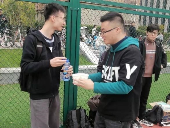 为了跟随习近平总书记“人生幸福快乐,强身健体十分重要”的指示,西安交通大学机械工程学院新生篮球赛于2021年10月11日正式拉开序幕。篮球赛期间,球员们在球场上挥洒汗水,观众们在场边高声喝彩,尽管天气寒冷,可依然抵挡不住他们的热情。因此硕1004班志愿服务新生篮球赛的进行,向场边观众和场上运动员提供饮用水。