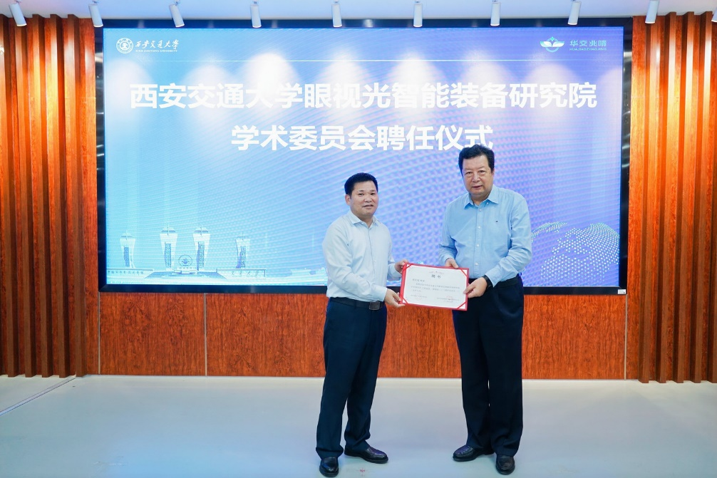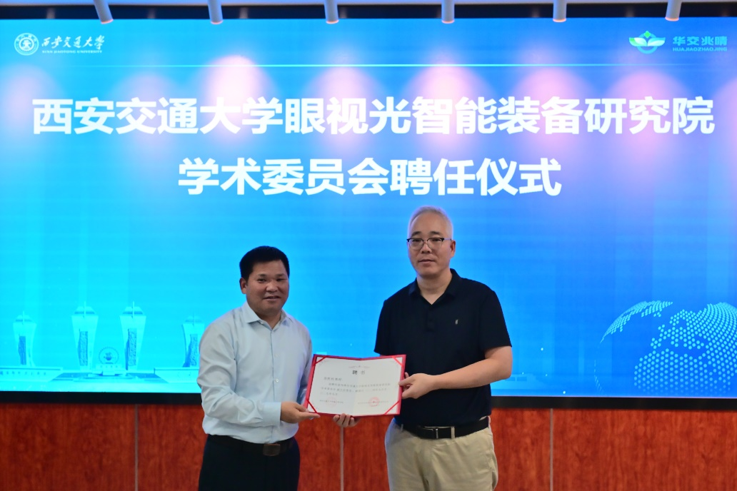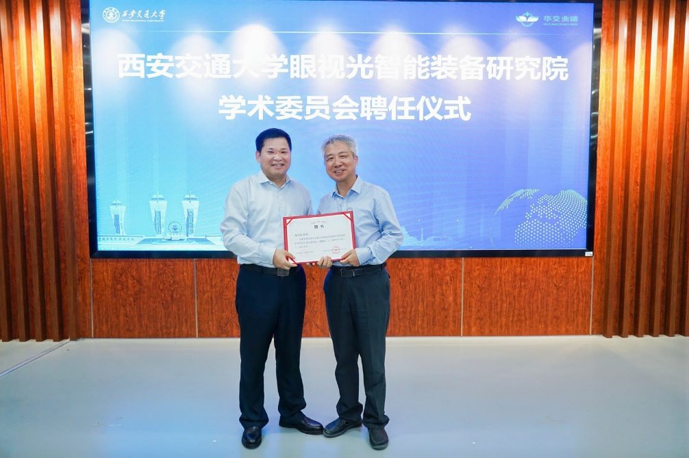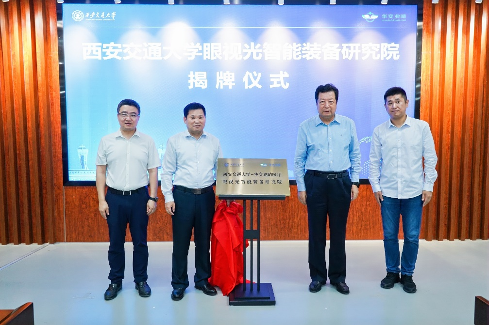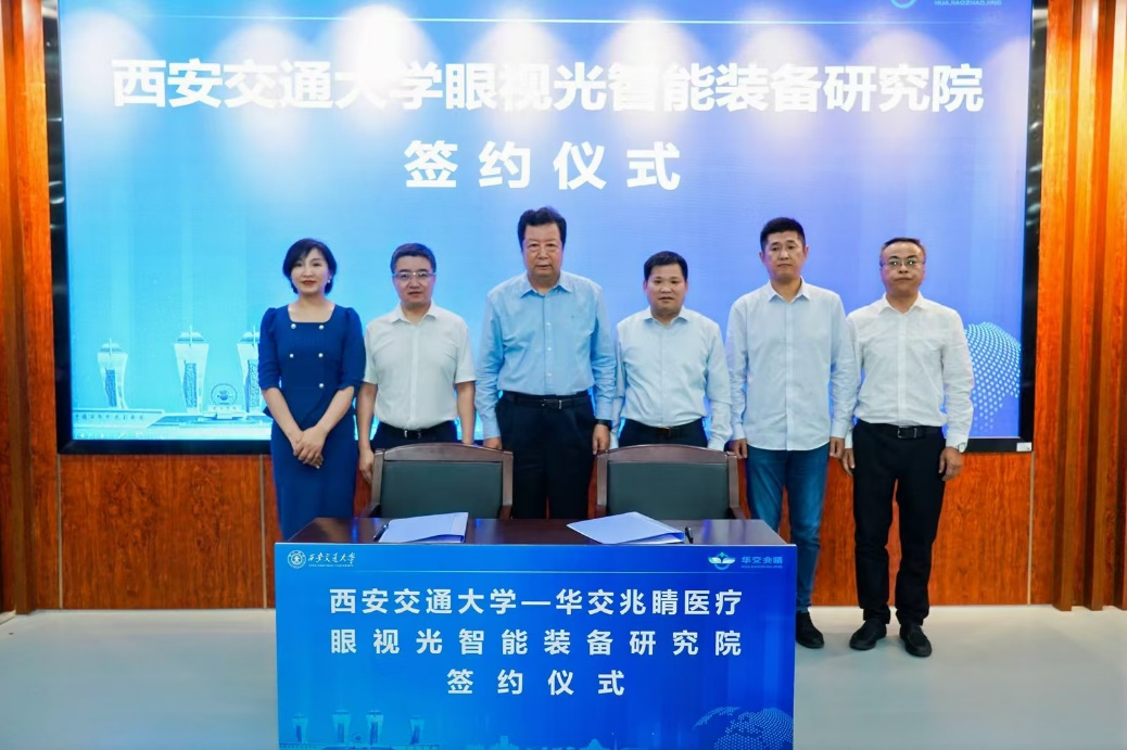 9月27日下午,西安交通大学—华交兆睛医疗眼视光智能装备研究院揭牌仪式在中国西部科技创新港举行。中国工程院院士、西安交通大学教授蒋庄徳,西安交通大学校长助理黄忠德,华交兆睛医疗公司总经理谷峰以及学校职能部处和部分学院领导出席揭牌仪式。仪式由机械工程学院党委书记张俊斌主持。