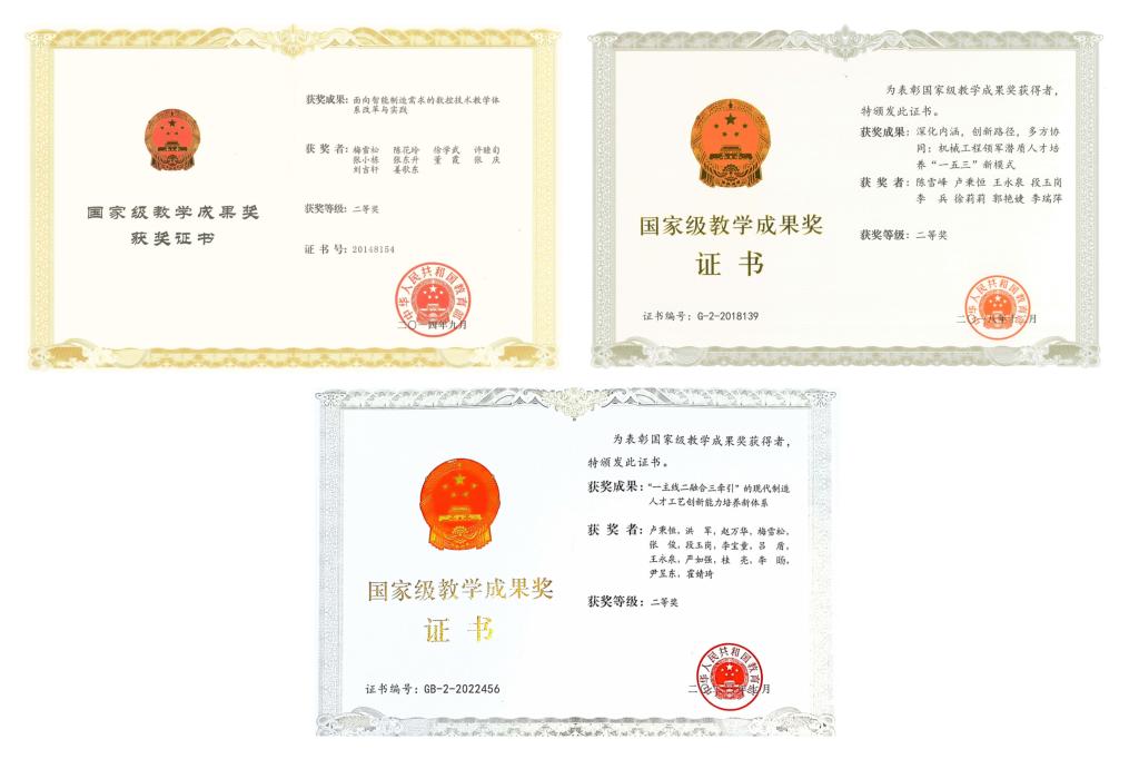 依托国家级实验教学示范中心,持续建设“数智化”智能 制造实践教学平台,建设成果入选 2023 年中国高教学会“校企协同双百计划”优秀案例,并获陕西省教学成果奖。